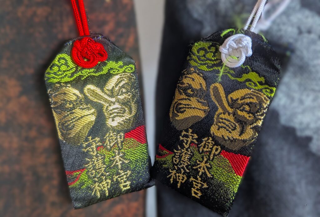 ここでしか拝受できないのが、「天狗御守(てんぐおまもり)」です。 本宮の「黄色」とは対照的に、こちらは力強い「赤色」。天狗とカラス天狗が描かれたこのお守りは、まさに「最後まで登り切った証」。