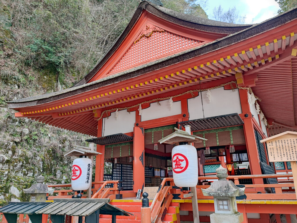 1,368段を登りきると、そこには切り立った崖の岩肌に寄り添うように立つ荘厳な「奥社」が現れます。